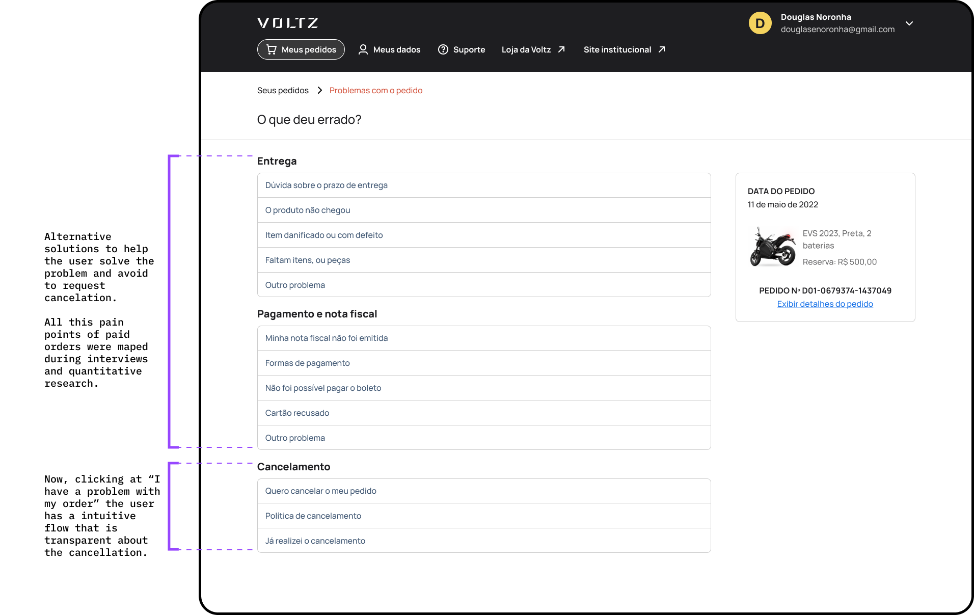We didn’t approach this as “just a UX improvement.” In a business like Voltz, cancellation touches the core of revenue, cashflow, and customer trust. Any change to this flow had the potential to ripple across sales, logistics, customer support, finance, and even legal compliance. That made it both an opportunity and a high-stakes move.